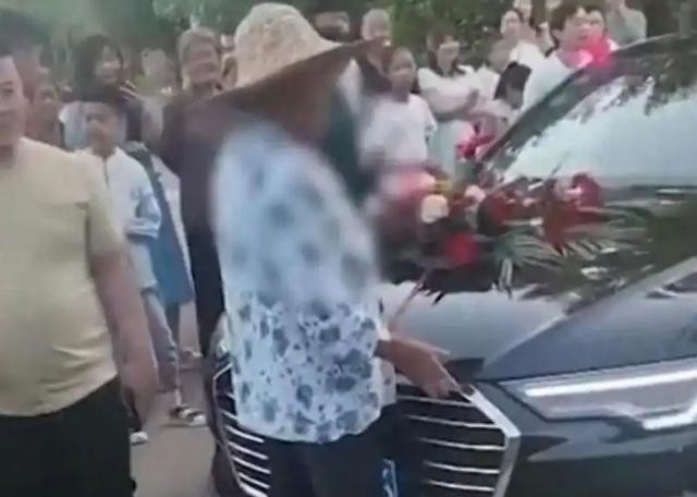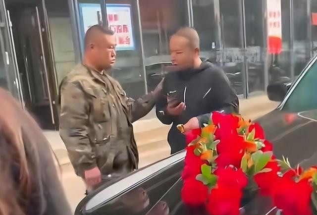 可是谁也没想到婚车原本开开心心地开在路上,却突然蹦出来一个穿着迷彩服的大哥。